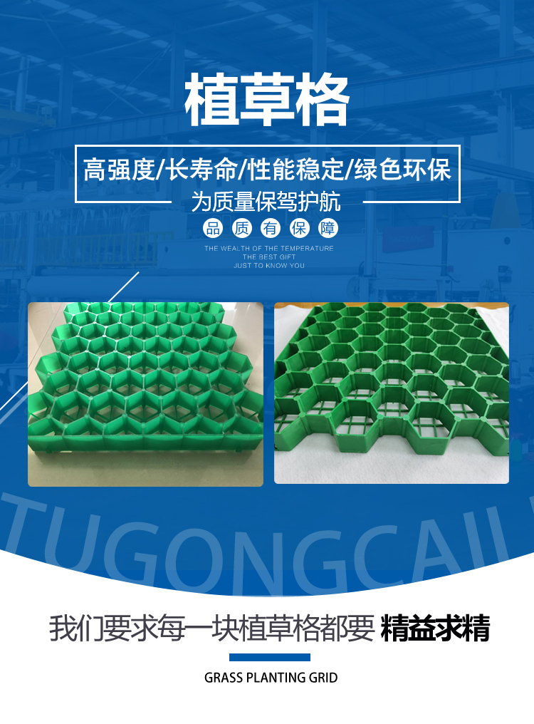 植草格可以改進人行道生態(tài)環(huán)境;植草格之間的縫隙具有較好的透水、透氣性,有利于地表上下水氣的通透,空氣內有栽培草皮等植被,是能夠削減地上反光所產生的扎眼現(xiàn)象。植草格能夠預制成各種規(guī)格、色彩,乃至是帶上各種花紋,拼接偽不同的圖案,其效果比水泥凈面要漂亮的多。