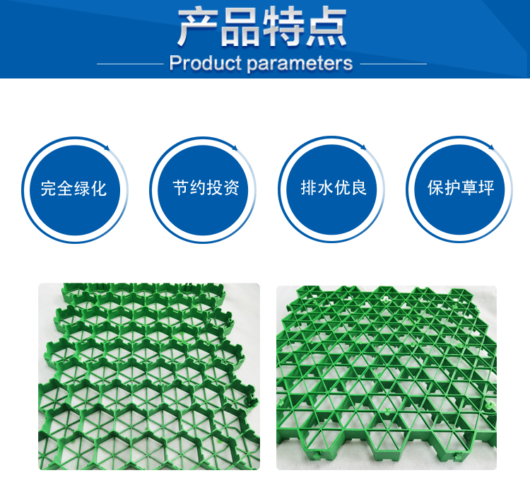 0538-5897089特點:植草格采用改性高分子量HDPE為原料,綠色環(huán)保,完全可回收;實現(xiàn)了草坪、停車場二合一,植草格耐壓、耐磨、抗沖擊、抗老化、耐腐蝕,提升了品質,節(jié)約了投資;獨特的平插式搭接,省工、快捷,可調節(jié)伸縮縫。